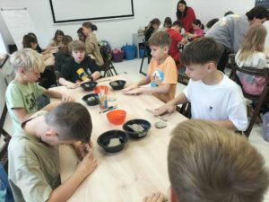 Po części teoretycznej przyszedł czas na twórczą zabawę. Uczniowie samodzielnie lepili z gliny własne naczynia – miski / kubki i samodzielnie je ornamentowali. Praca rękoma w naturalnym materiale okazała się nie tylko świetną formą nauki, lecz także okazją do rozwijania kreatywności i cierpliwości.