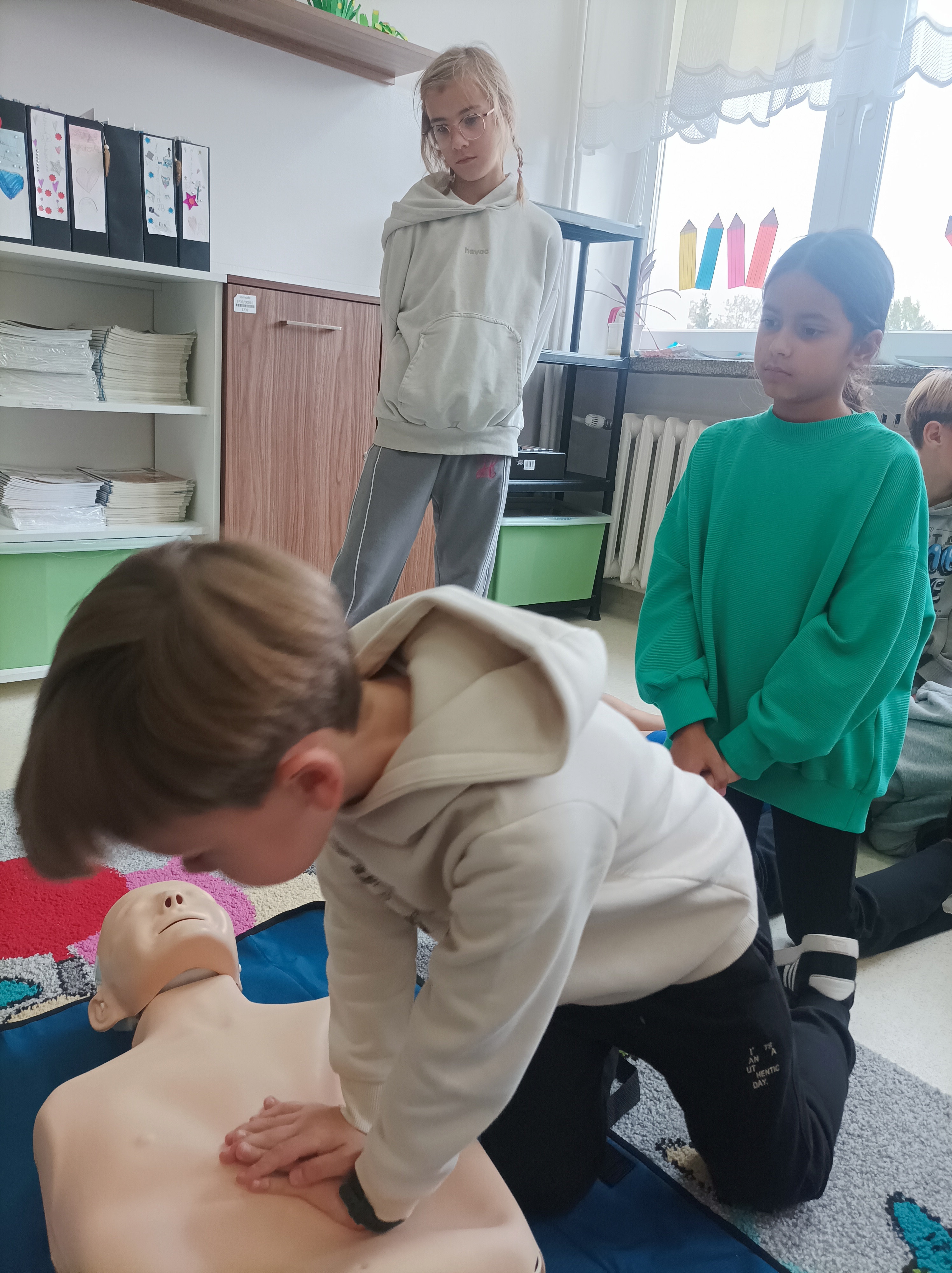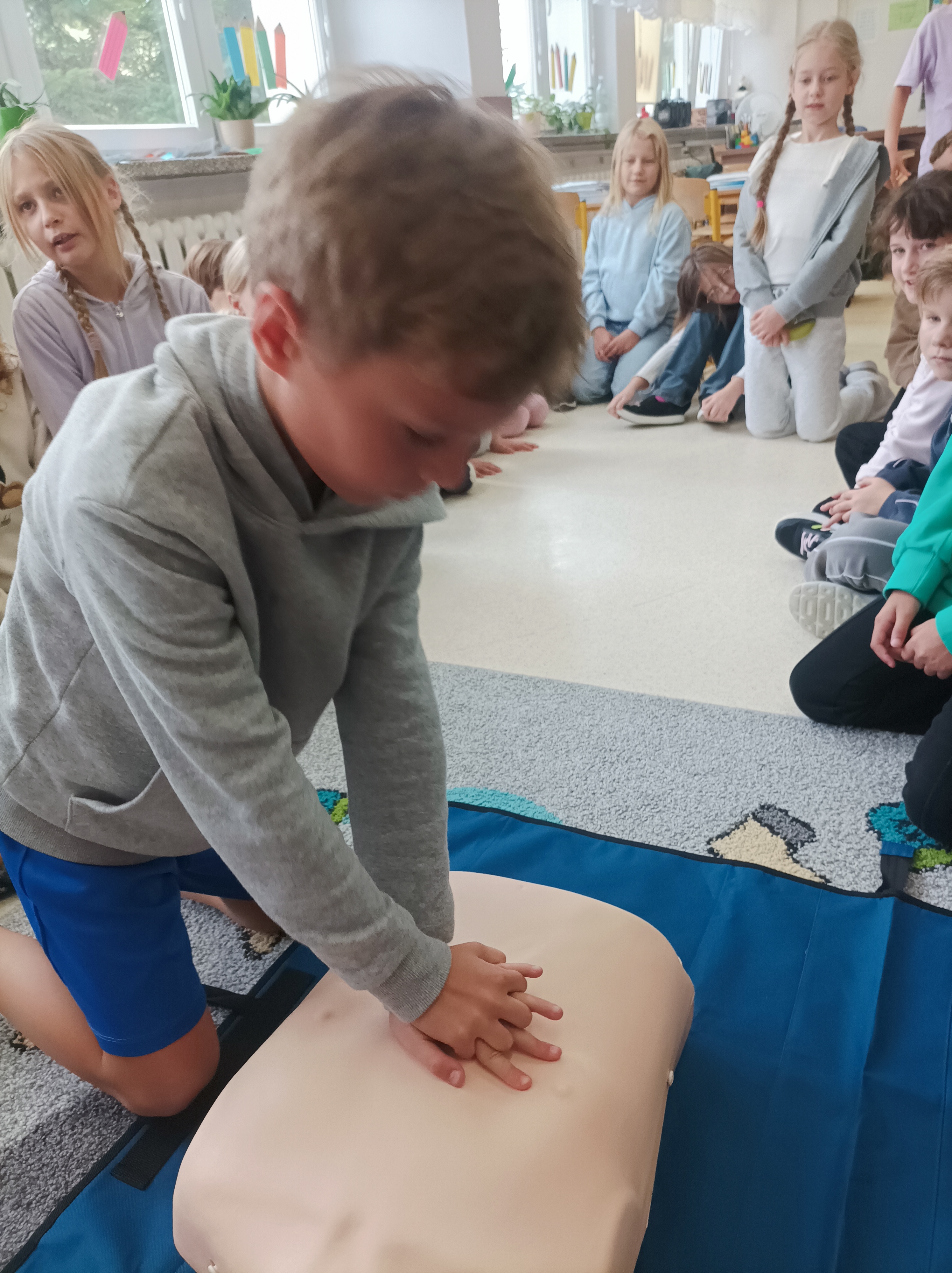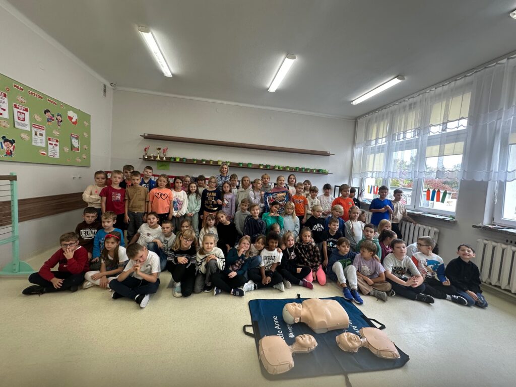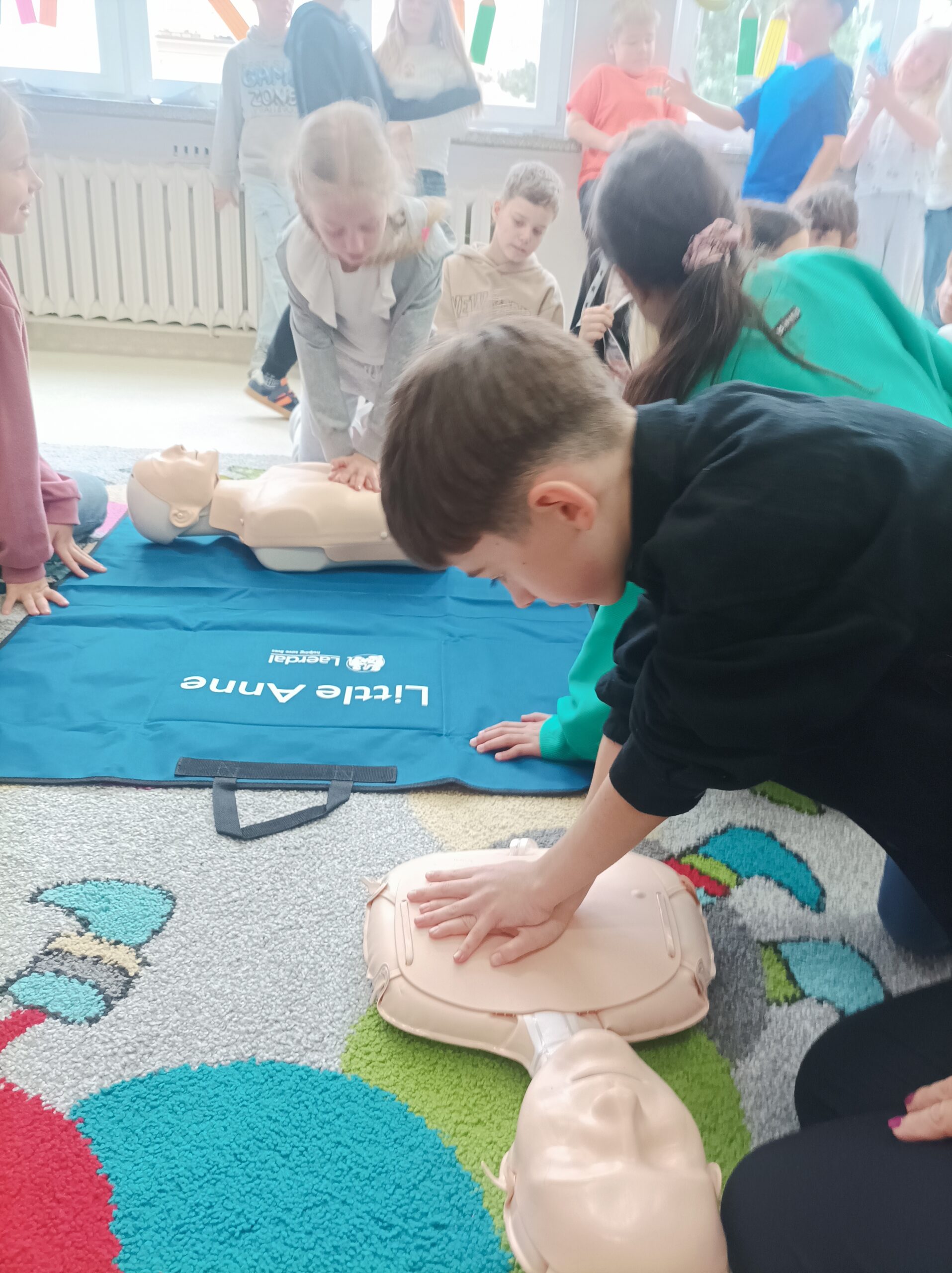 Próba bicia Rekordu jest świetną okazją do wspólnej nauki resuscytacji i podstawowych czynności ratujących życie przez najmłodszych. W samo południe przystąpiliśmy do bicia rekordu. Wspólnie z klasami I-III na trzech fantomach nieprzerwanie przez 30 minut ćwiczyliśmy resuscytację krążeniową. Każdy uczestnik przypomniał sobie zasady udzielania pierwszej pomocy, z wielkim zaangażowaniem uczniowie przystąpili do zadania. Po raz kolejny nasi uczniowie potwierdzili, że należy pomagać. Do zobaczenia za rok !!!