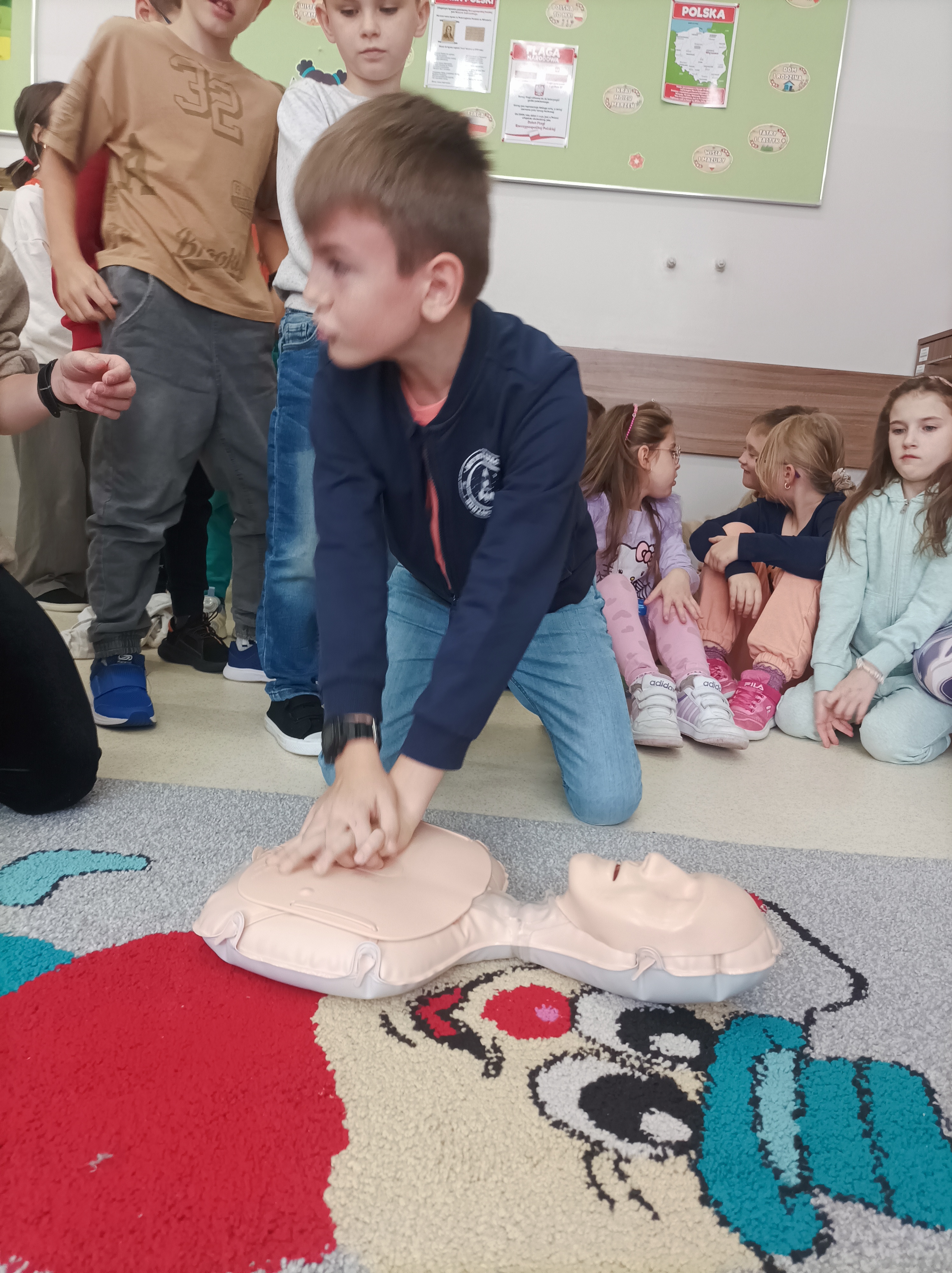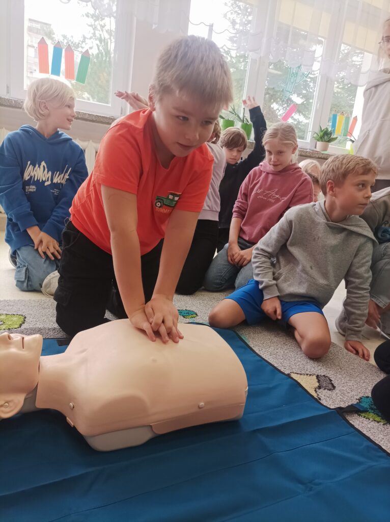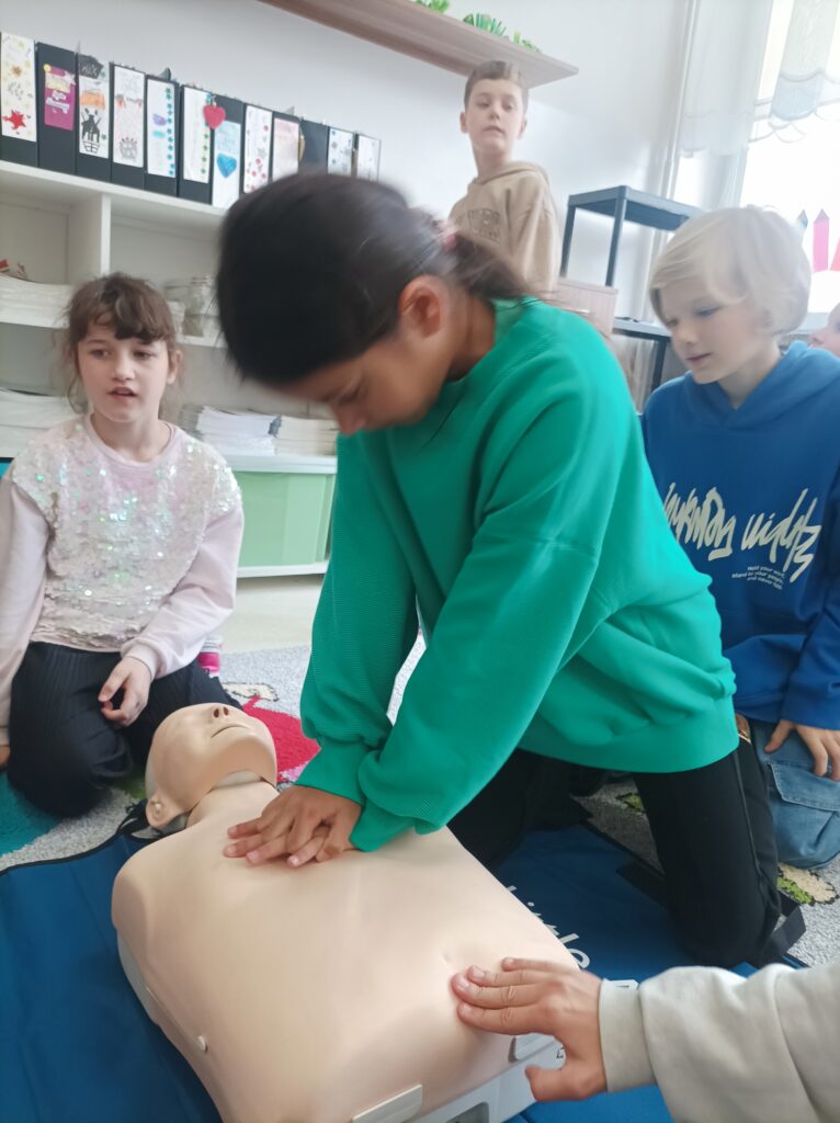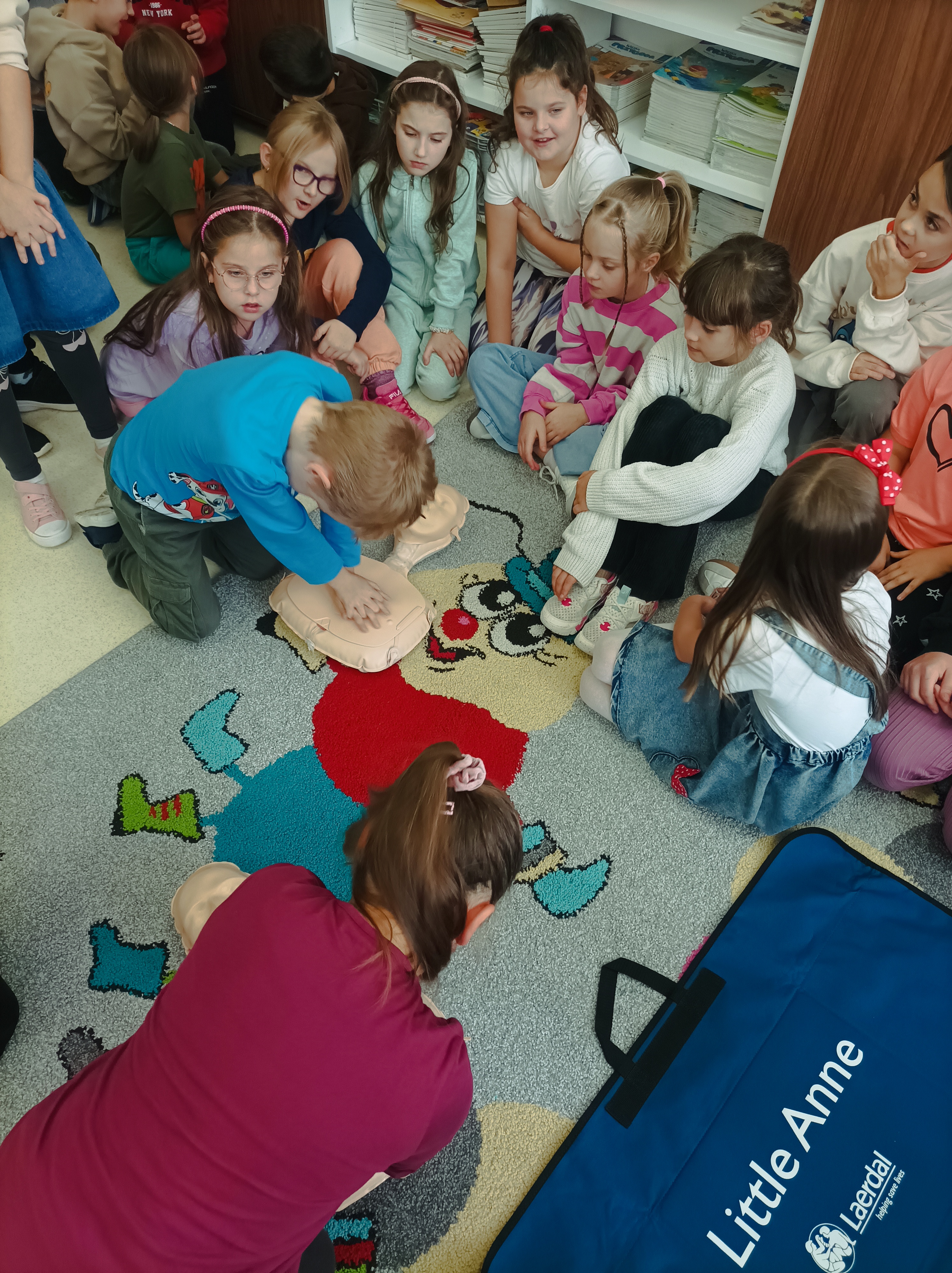 Próba bicia Rekordu jest świetną okazją do wspólnej nauki resuscytacji i podstawowych czynności ratujących życie przez najmłodszych. W samo południe przystąpiliśmy do bicia rekordu. Wspólnie z klasami I-III na trzech fantomach nieprzerwanie przez 30 minut ćwiczyliśmy resuscytację krążeniową. Każdy uczestnik przypomniał sobie zasady udzielania pierwszej pomocy, z wielkim zaangażowaniem uczniowie przystąpili do zadania. Po raz kolejny nasi uczniowie potwierdzili, że należy pomagać. Do zobaczenia za rok !!!
