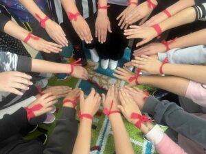 Uczniowie oraz nauczyciele przypięli czerwone wstążki jako znak sprzeciwu wobec przemocy i wsparcia dla tych, którzy jej doświadczyli. W klasach odbyły się rozmowy i warsztaty na temat empatii, bezpieczeństwa, asertywności oraz sposobów reagowania w sytuacjach trudnych. Podkreśliliśmy, jak ważne jest mówienie o przemocy, szukanie pomocy i budowanie kultury szacunku i zrozumienia.