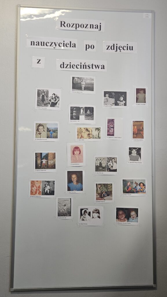 W naszej szkole Dzień Nauczyciela miał wyjątkowy charakter. Z tej okazji Samorząd Uczniowski przygotował niecodzienną niespodziankę – wystawę zatytułowaną „Rozpoznaj swojego nauczyciela po zdjęciu z dzieciństwa”. W szkolnej Strefie Relaksu zawisły zdjęcia nauczycieli z czasów ich dzieciństwa. Wystawa okazała się wspaniałym pomysłem – wzbudziła ogromne zainteresowanie zarówno wśród uczniów, jak i nauczycieli, wywołała wiele uśmiechu, pozytywnych emocji i wspomnień.