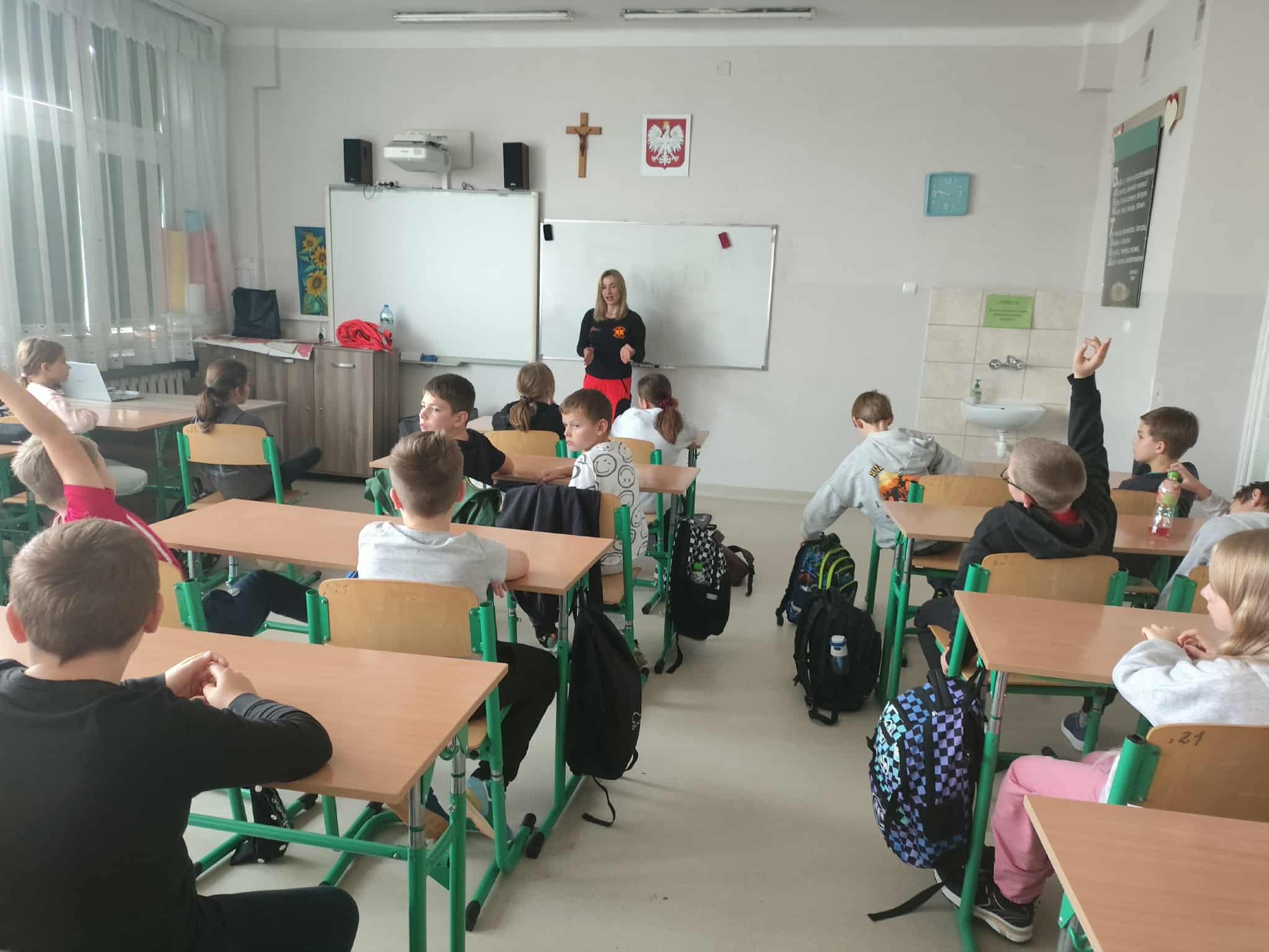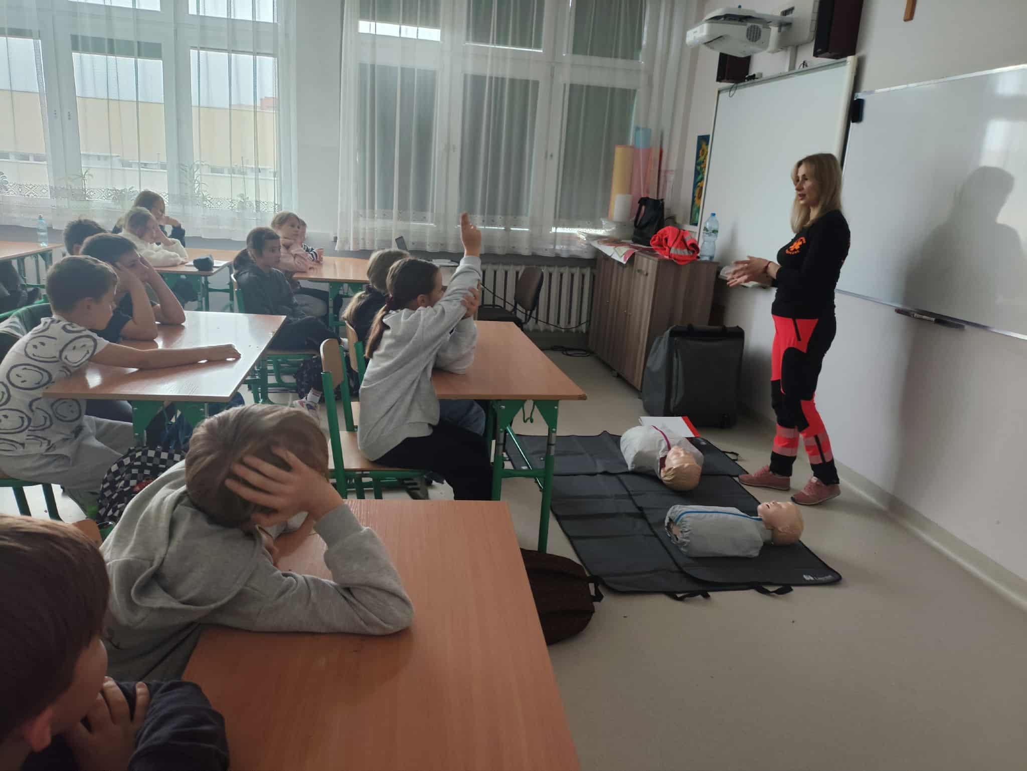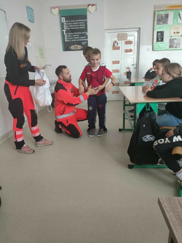 W związku z przypadającym na 16 października Europejskim Dniem Przywracania Czynności Serca październikowym gościem była p. Magdalena Świszczorowska-Szewczyk – dyrektor firmy i transportu medycznego M-Medic. Pani Magda przeprowadziła pogadankę i warsztaty pod hasłem „Pierwsza pomoc zawsze w modzie”. Zajęcia miały na celu nauczenie dzieci podstaw udzielania pierwszej pomocy przedmedycznej oraz kształtowanie odpowiednich postaw w sytuacjach zagrożenia życia lub zdrowia. Podczas warsztatów uczniowie: • dowiedzieli się, jak rozpoznać osobę potrzebującą pomocy, • nauczyli się, jak prawidłowo wezwać pomoc, dzwoniąc pod numer 112, • ćwiczyli układanie poszkodowanego w pozycji bocznej bezpiecznej oraz chwyt Heimlicha, • poznali zasady resuscytacji krążeniowo-oddechowej (RKO) na fantomie, • omówili sytuacje, w których należy zachować spokój i zadbać o własne bezpieczeństwo. Zajęcia miały charakter praktyczny i odbywały się w niezwykle przyjaznej atmosferze. Uczniowie z dużym zaangażowaniem uczestniczyli w ćwiczeniach, zadawali pytania i dzielili się swoimi doświadczeniami. Z pewnością wykształcili umiejętność udzielania pierwszej pomocy przedmedycznej, co może uratować życie i zrozumieli, że pomaganie jest zawsze w modzie!