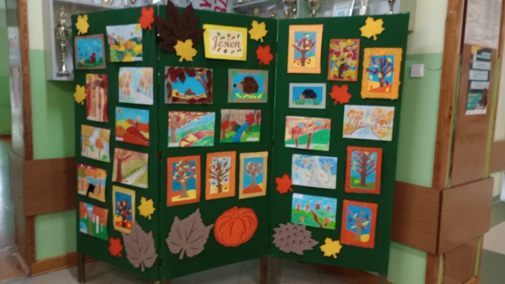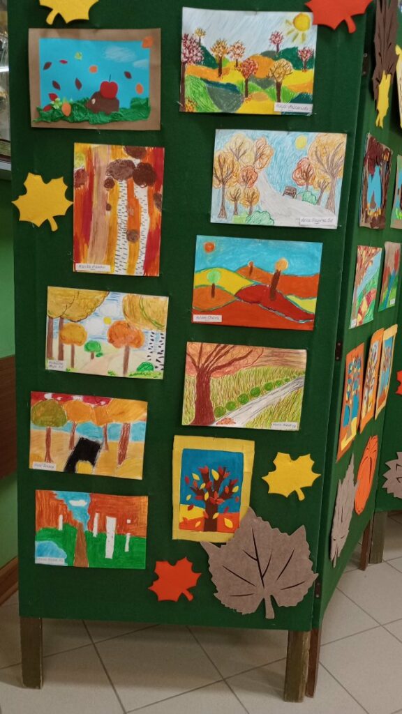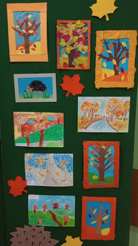 Powstały kolorowe drzewa, pejzaże, leśne zwierzątka. Różnorodna technika i kolory jesieni sprawiają, że prace przyciągają wzrok i zachwycają pomysłami oraz kolorami. Zapraszamy do obejrzenia galerii zdjęć. Każda praca to małe dzieło sztuki. Prace powstały na lekcjach plastyki i techniki. Wystawę można podziwiać na holu oraz w pracowni technicznej w sali 25.