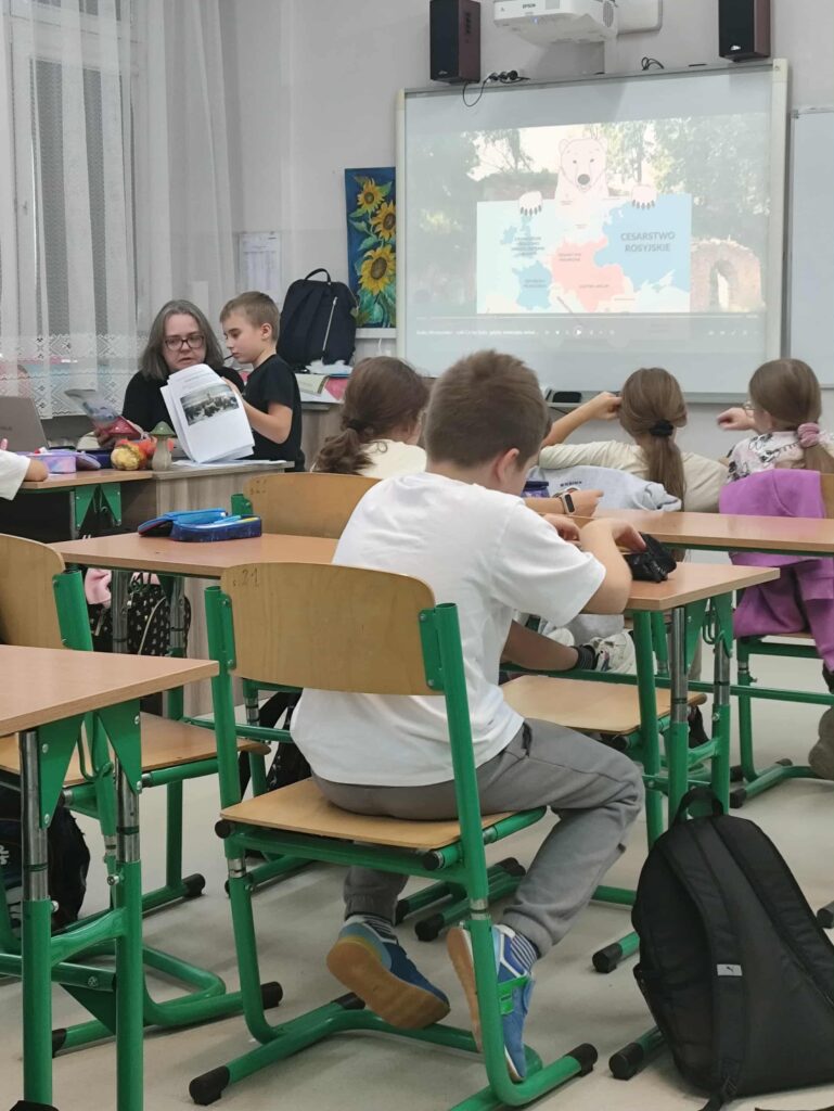 Pani Edyta poprowadziła warsztaty pod hasłem: „Przystanek NIEPODLEGŁOŚĆ”. Uczniowie obejrzeli krótką animację i wykonali autorskie karty pracy nawiązujące do tematyki 107.rocznicy odzyskania przez Polskę niepodległości. W związku z listopadem – Miesiącem Pamięci Narodowej klasa 4c utrwaliła podstawową wiedzę z zakresu historii, oddając cześć tym, którzy poświęcili życie dla wolnej, suwerennej i niepodległej Rzeczypospolitej.