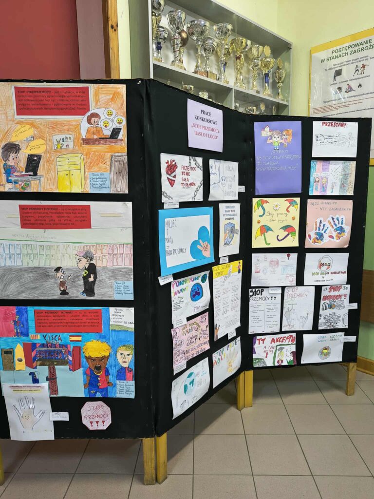 W związku z Tygodniem Przeciwdziałania Przemocy Rówieśniczej w naszej szkole zorganizowany został konkurs pt. „Stop przemocy- hasło i logo”, który skierowany był do wszystkich uczniów z klas IV-VIII. Zadaniem konkursowym było zaprojektowanie logo i ułożenie hasła, propagujących szkołę bez przemocy.