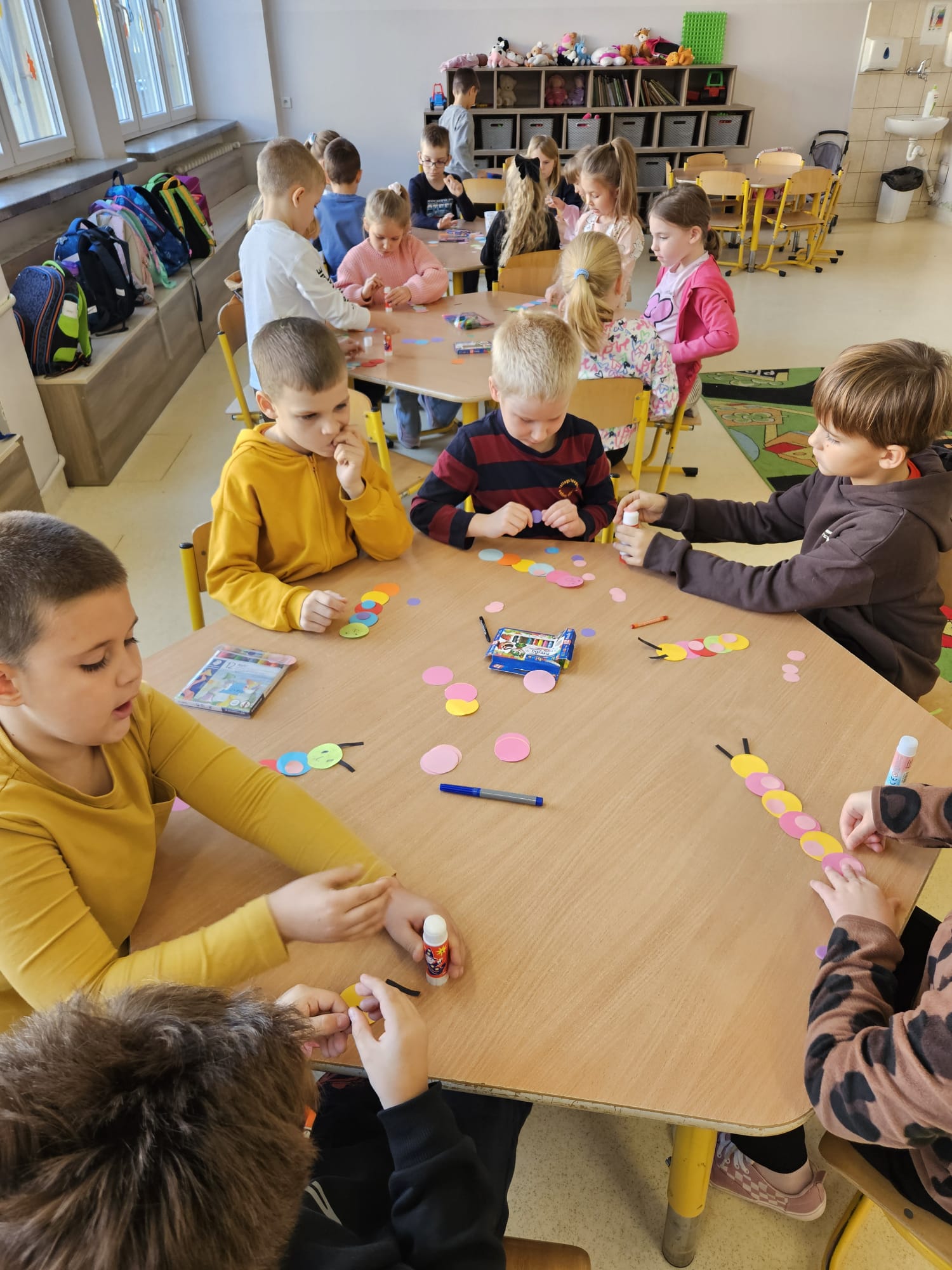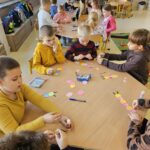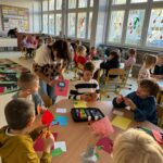 Nie zabrakło również wspólnego śpiewania radosnej piosenki „Bajkowy czar”, która wprowadziła wszystkich w doskonały nastrój. Na zakończenie mali artyści wykonali piękne prace plastyczne inspirowane tematyką zajęć.