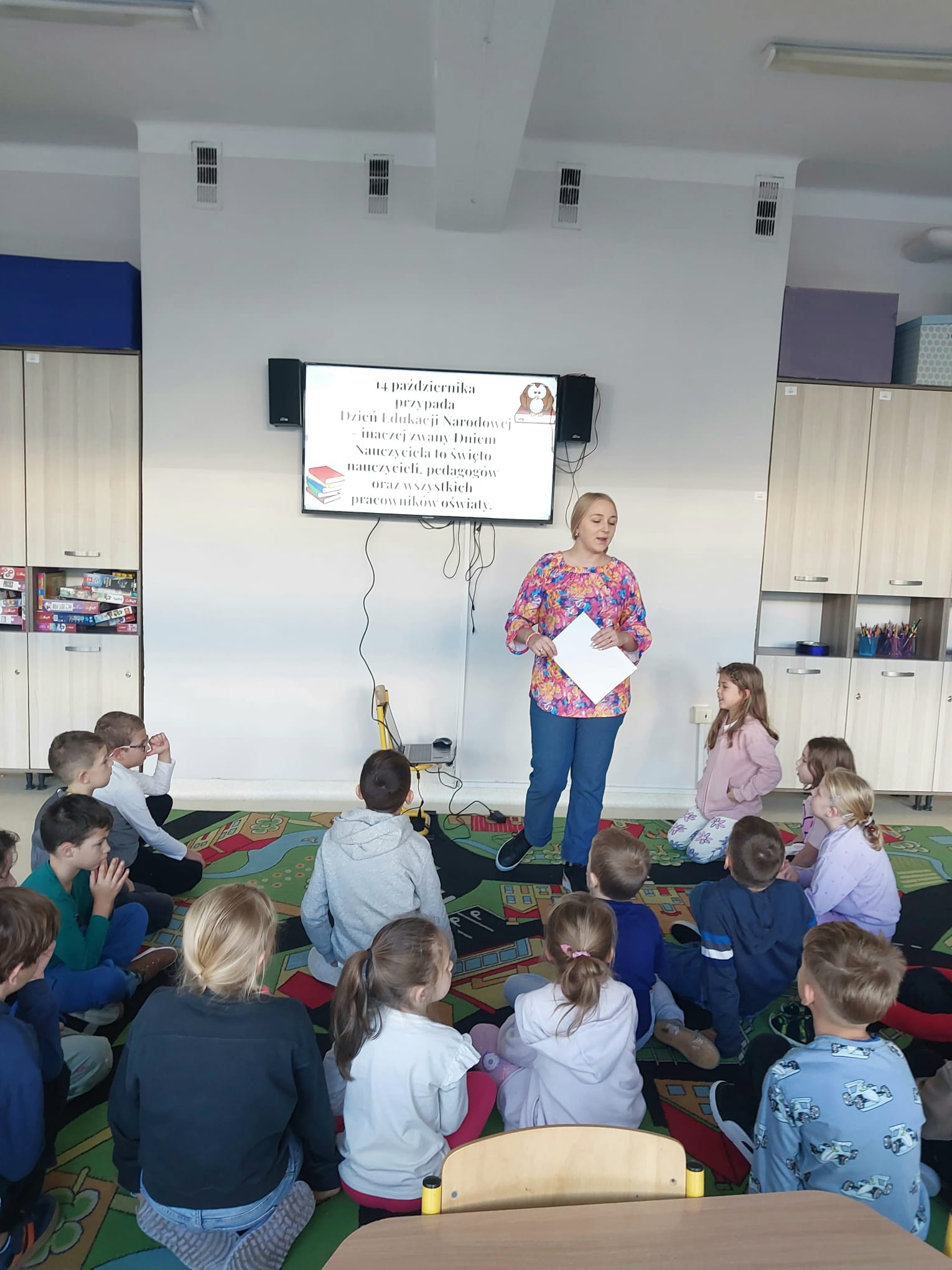 Z okazji Dnia Edukacji Narodowej dzieci z naszej świetlicy wzięły udział w zajęciach poświęconych pracy nauczyciela. Podczas zajęć wychowawcy wyświetlili film edukacyjny „Dzień Edukacji Narodowej”, dzięki któremu świetliki poznały historię tego święta oraz dowiedziały się, jak odpowiedzialna i wymagająca jest praca nauczyciela.