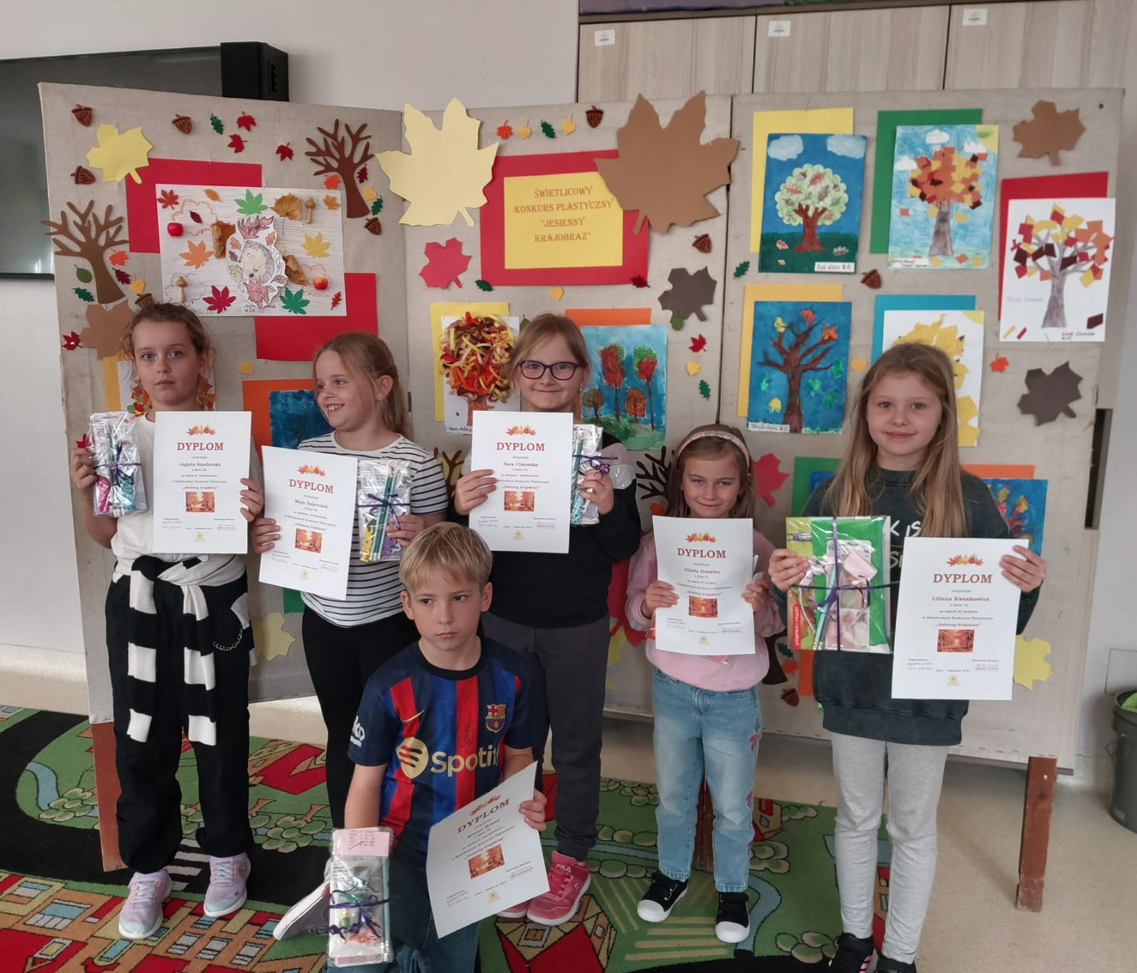 28 października 2025 roku w świetlicy szkolnej odbyło się rozstrzygnięcie konkursu plastycznego organizowanego przez Panie: Sylwię Jabłońską, Magdalenę Bartochę. Konkurs adresowany był do uczniów klas 0-4.Zadanie uczestników konkursu polegało na samodzielnym wykonaniu pracy plastycznej przedstawiającej jesienny krajobraz. Technika wykonania pracy była dowolna. Na ocenę wpłynęły następujące kryteria: estetyka, pomysłowość oryginalność, samodzielność. Nie lada wyzwaniem okazało się wybranie trzech najlepszych spośród wszystkich prac. Laureaci konkursu otrzymali dyplomy oraz pamiątkowe nagrody.