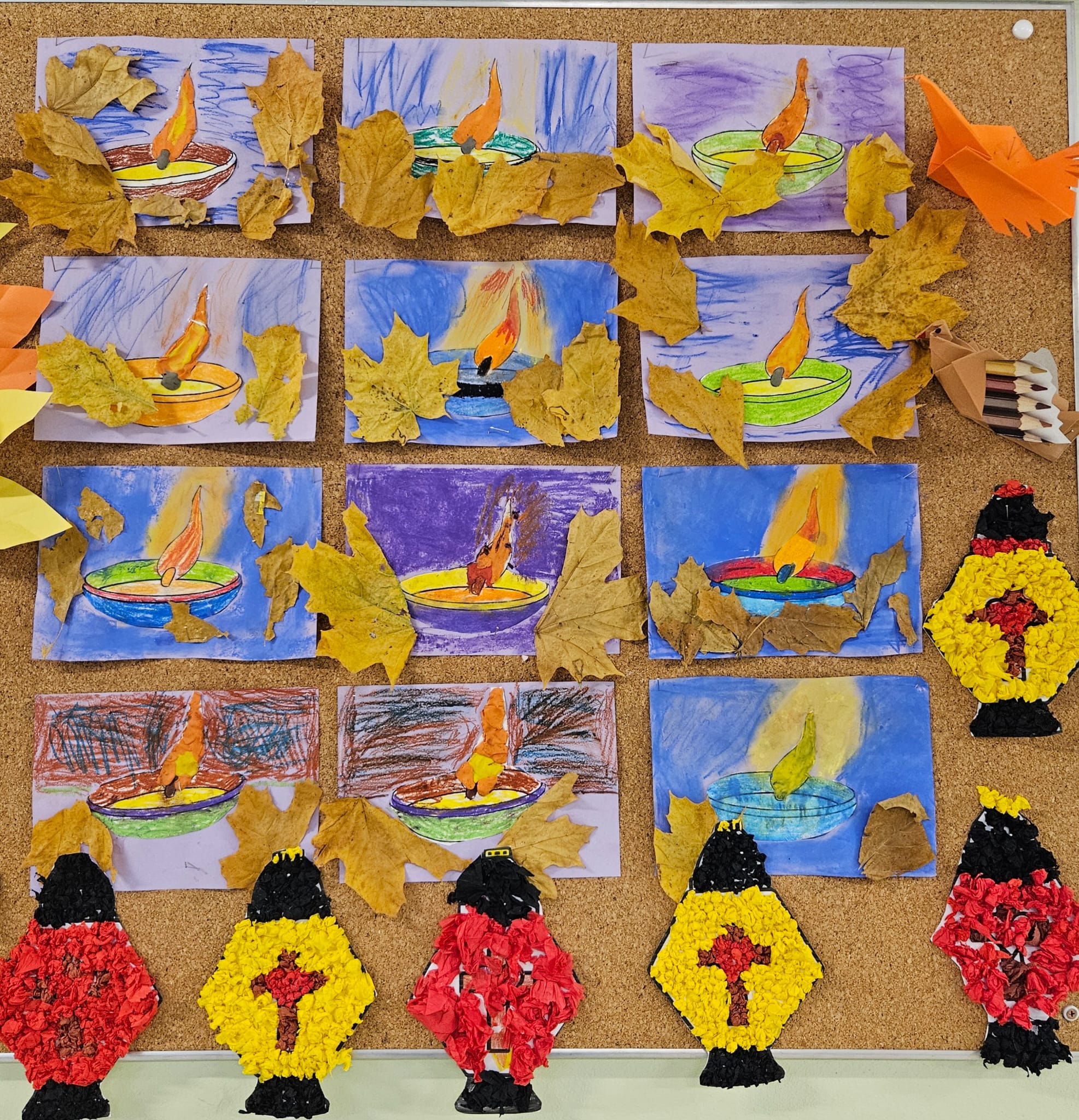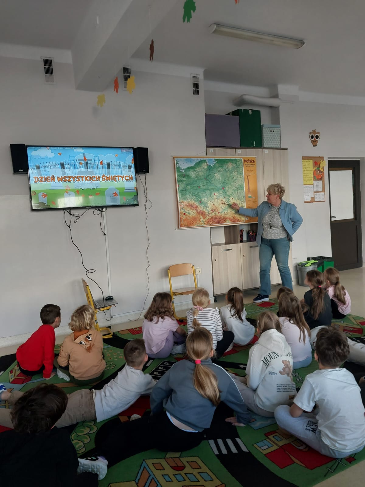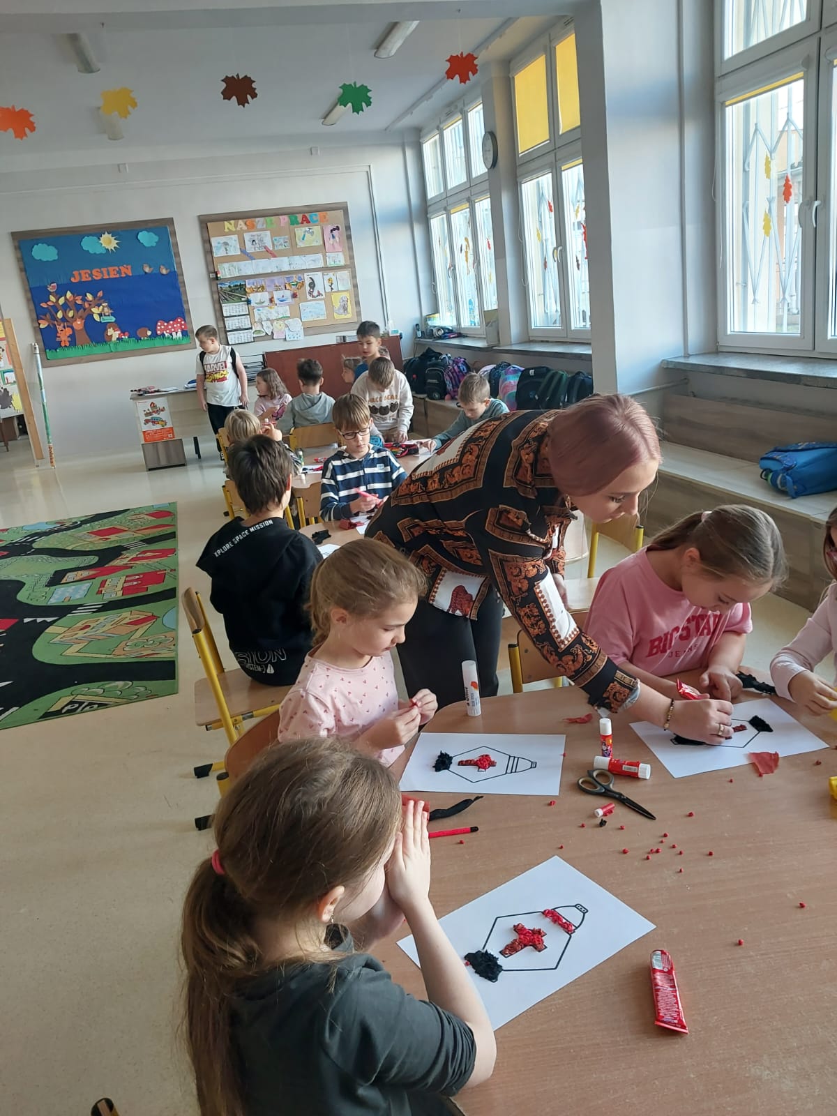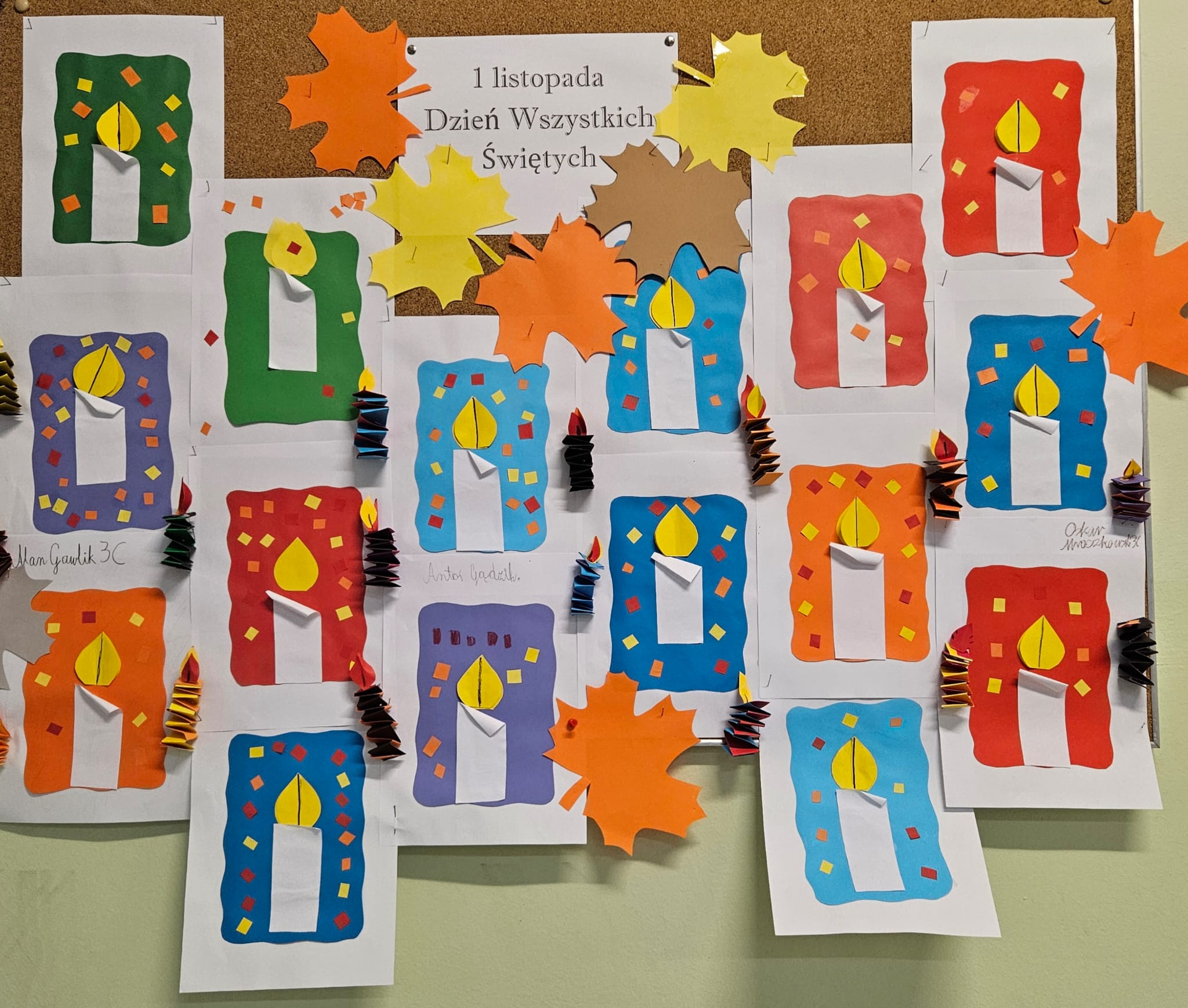 Podczas zajęć uczniowie poznali także zwyczaje i obrzędy obchodzenia tego święta w innych krajach. Zwieńczeniem spotkania była praca plastyczna – własnoręcznie wykonane „znicze”, które stały się piękną ozdobą szkolnego korytarza.
