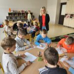 Nie zabrakło również wspólnego śpiewania – radośnie wybrzmiała piosenka „Każdy jest inny”, idealnie wpisująca się w temat dnia. Na zakończenie zajęć dzieci przygotowały piękne prace plastyczne, którymi udekorowaliśmy szkolny korytarz.